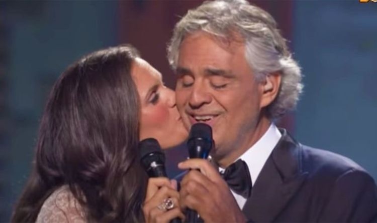 Andrea, himself, starts the performance of Cheek to Cheek alone on stage.