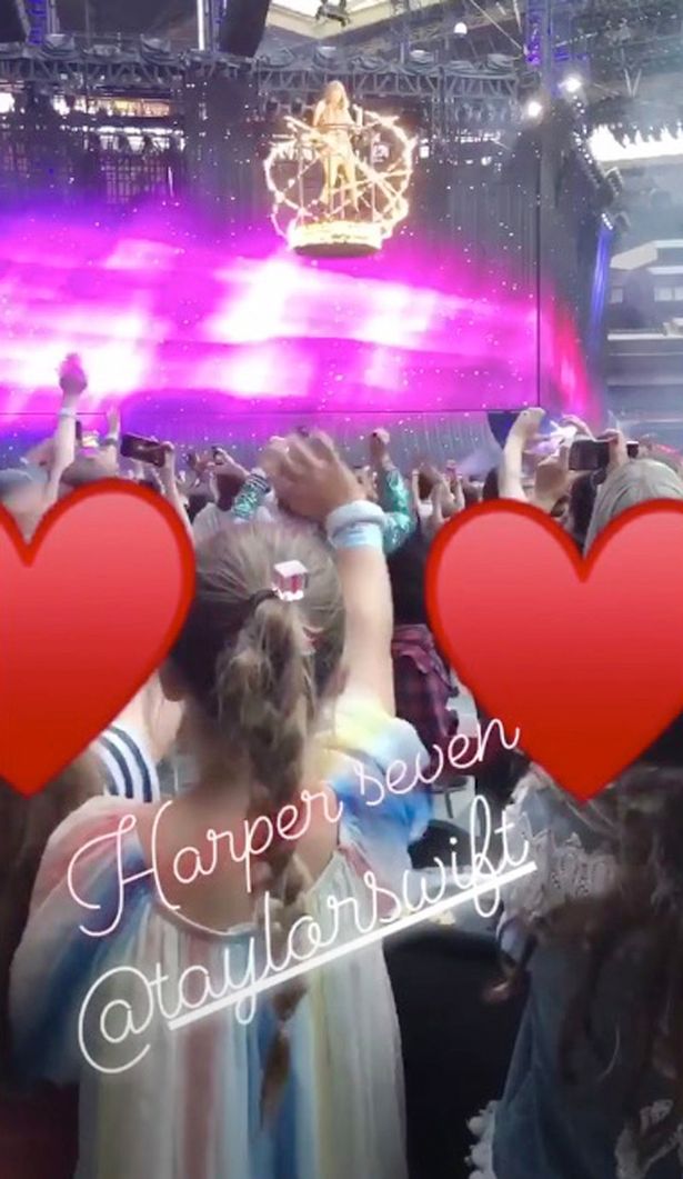 The youngest of David and Victoria Beckham ’s kids was taken to see Taylor’s Reputation concert in London on Friday night – and a cute video snapped her waving at the singer as she moved over the heads of her audience.