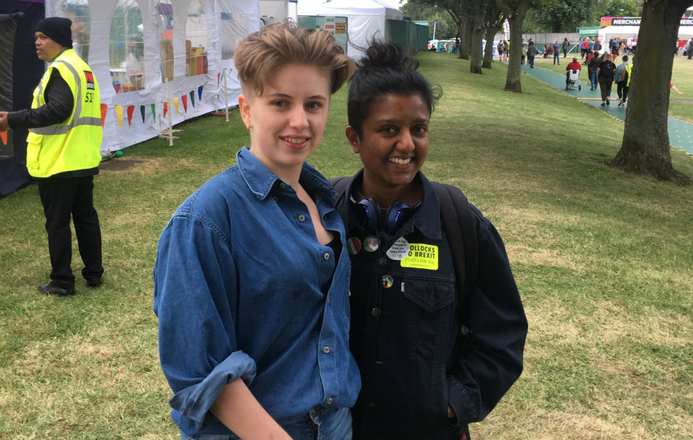 17-year-old Labour Party supporter Amy Sankey and 19-year-old Green Party supporter Ragavi Thaya