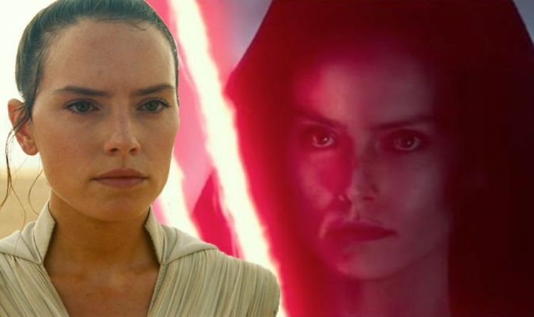The image shows off Rey in a dark red outfit – similar to Kylo Ren’s – with blood-red eyes and a devilish scowl.