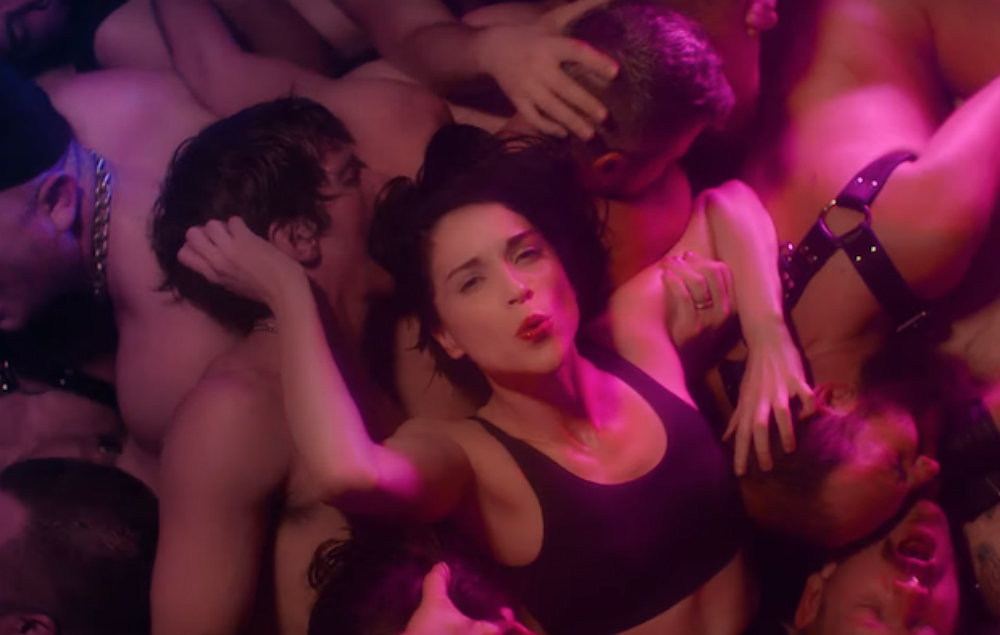 The clip for the reworked track from her acclaimed 2017 album ‘MASSEDUCTION‘ sees Annie Clark walking through a club of semi-nude men in leather, before she starts crowdsurfing and they becoming one writhing mass of limbs.