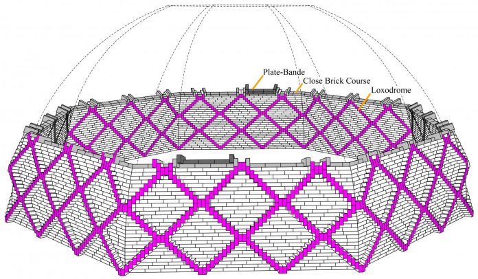 The detailed computer analysis accounts for the forces at work down to the individual brick, explaining how equilibrium is leveraged. The technique called discrete element modelling (DEM) analyzed the structure at several layers and stages of construction. A limit state analysis determined the overall equilibrium state, or stability, of the completed structure. Not only do these tests verify the mechanics of the structures, but they also make it possible to recreate the techniques for modern construction.
