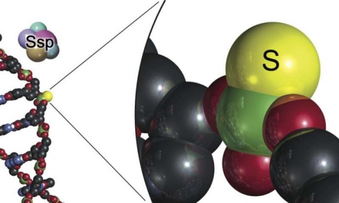 “What the team discovered now is an entirely new and different mechanism in which phosphorothioates are located on only one strand of DNA at very high frequency. The host defense enzymes then nick one strand of the invader DNA to stop the virus from making copies of itself. Like a surgeon’s knife compared to a meat cleaver.”