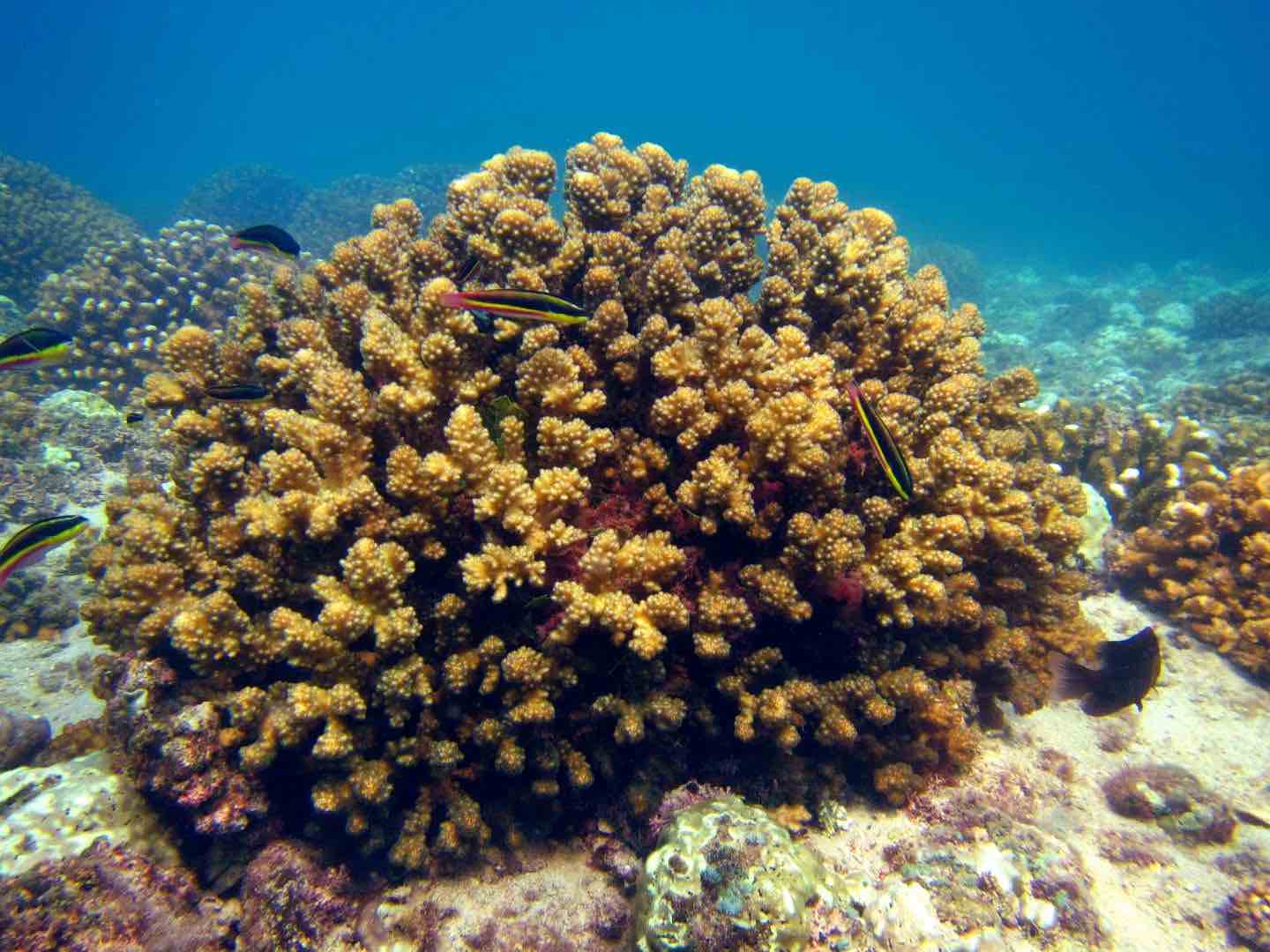 First, corals in this area are mostly pocilloporids, a type of coral that reproduces at high rates. They also contain species of symbiotic algae that are particularly tolerant to extreme temperatures.