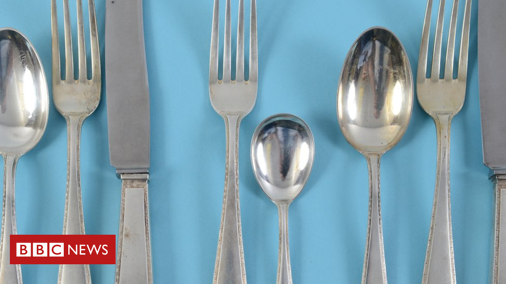 The cutlery bears the Nazi eagle, swastika and Hitler’s initials.