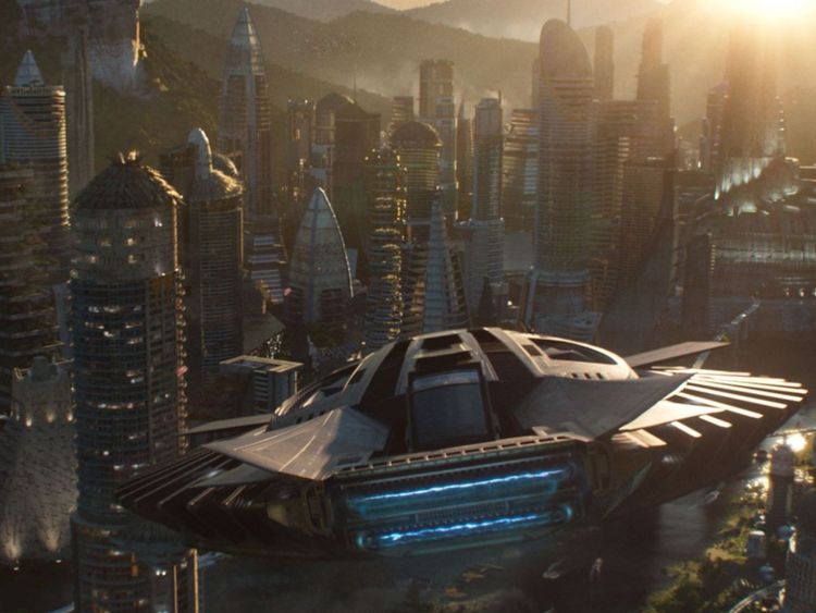 In the film, Wakanda combines lush river valleys and mountain ranges with space-age technology, featuring towering skyscrapers and state-of-the-art science labs.