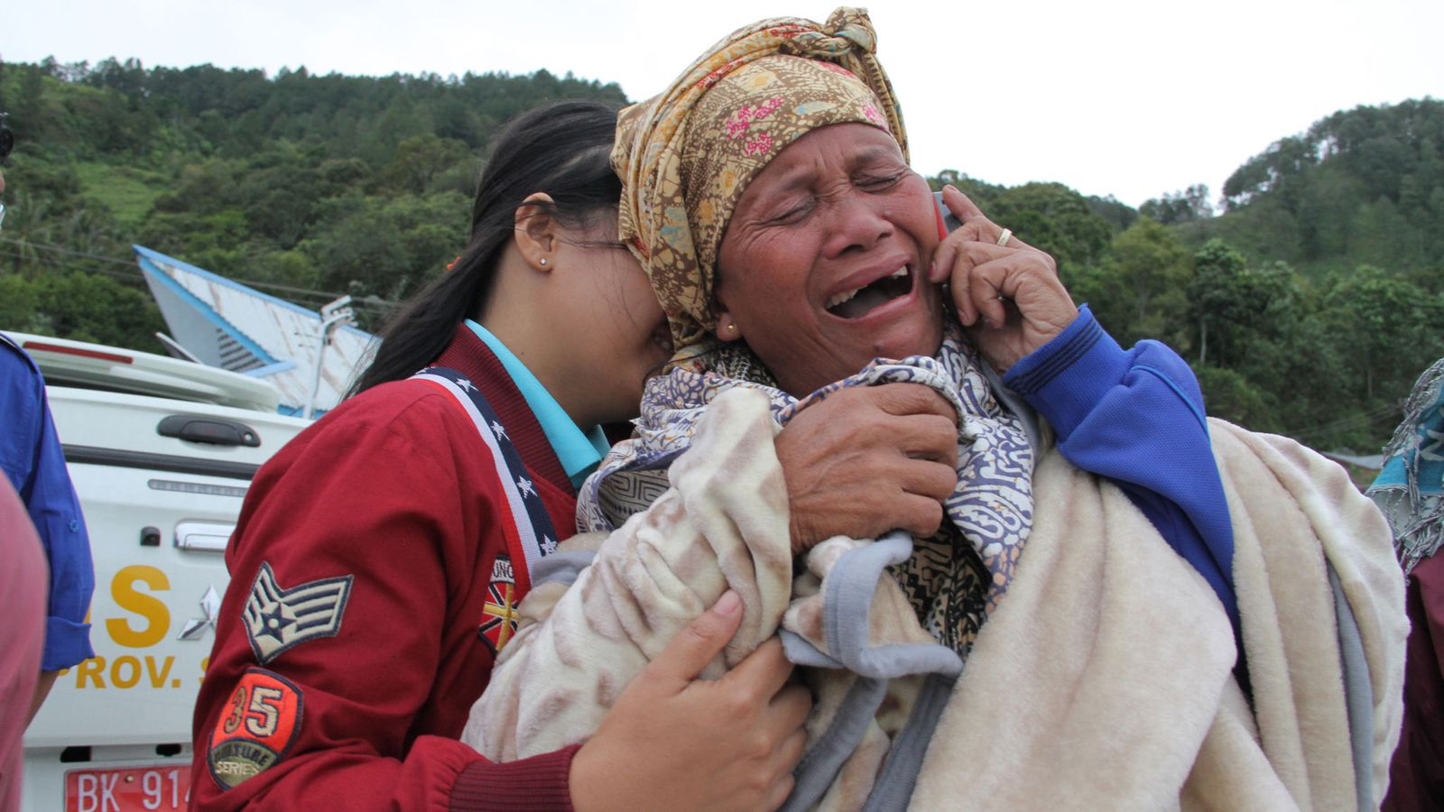 Mobile phone footage released by the National Disaster Mitigation Agency shows the crew of another ferry attempting to rescue survivors in the choppy waters.