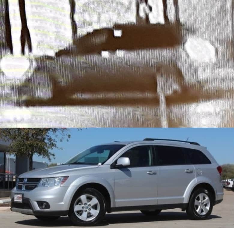 The top image is of the Dodge Journey driven by a man RCMP believe interacted with Myrah Whitstone on May 23. The bottom image is a stock photo of a Dodge Journey. (RCMP)
