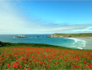 This photograph was taken by Julie Taylor of the poppy fields over Crantock Beach, North Cornwall