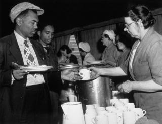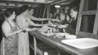 A canteen was set up for the Windrush residents. Pie was a popular dish