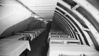 The underground passages had been fitted with bunk beds and washing facilities when they were used as civilian shelters during the war.