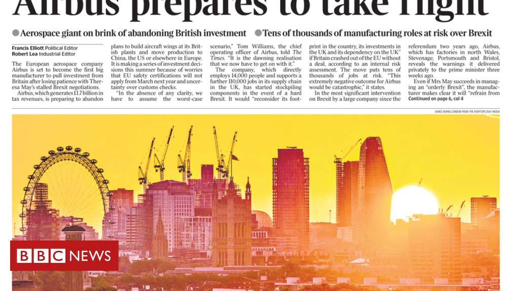 The UK’s post-Brexit future provides a focus for Friday’s front pages – with the Times reporting that Airbus is on the brink of pulling British investment after losing patience with Theresa May’s negotiations with the EU. The paper says the firm has worries that EU safety certifications will not apply after March, and over uncertainty about customs checks.