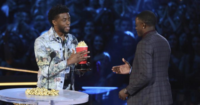 SANTA MONICA, Calif. — The MTV Movie & TV Awards gave “Black Panther” its first taste of awards glory, with Marvel’s blockbuster taking home four honors including two awards for its star, Chadwick Boseman. Boseman quickly handed off his best hero award to James Shaw Jr., who wrestled an assault-style rifle away from a gunman in a Tennessee Waffle House in April.