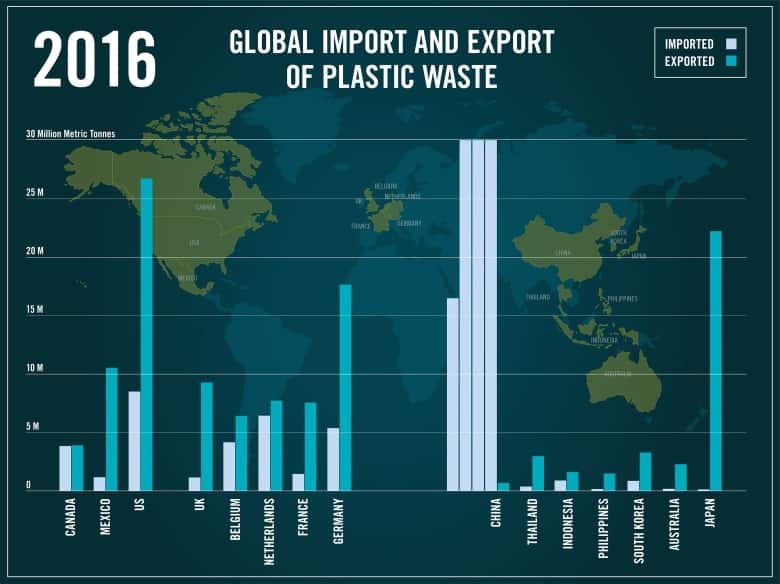 This graph illustrates the cumulative trade of plastic waste in 2016. (Lindsay Robinson, University of Georgia)