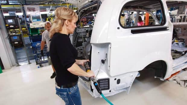 A worker on the production line at Chrysler’s assembly plant in Windsor, Ont. Tariffs in the sector would be very hard to implement because supply chains tend to cross borders multiple times. (Geoff Robins/Canadian Press)