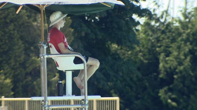 A lifeguard gets a break from the sun at Kit Pool on Monday. (CBC)