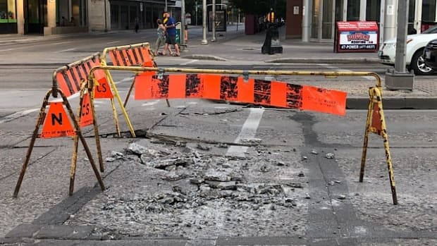 This marked the second afternoon in a row that Winnipeg drivers had to navigate around broken pavement. On Tuesday, a section of road on Scurfield Boulevard buckled due to hot weather, according to a city spokesperson.