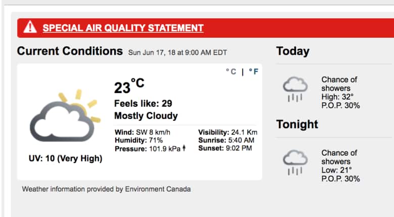 Environment Canada has also issued a special air quality statement for Hamilton, warning that possible high levels of air pollution are expected today.