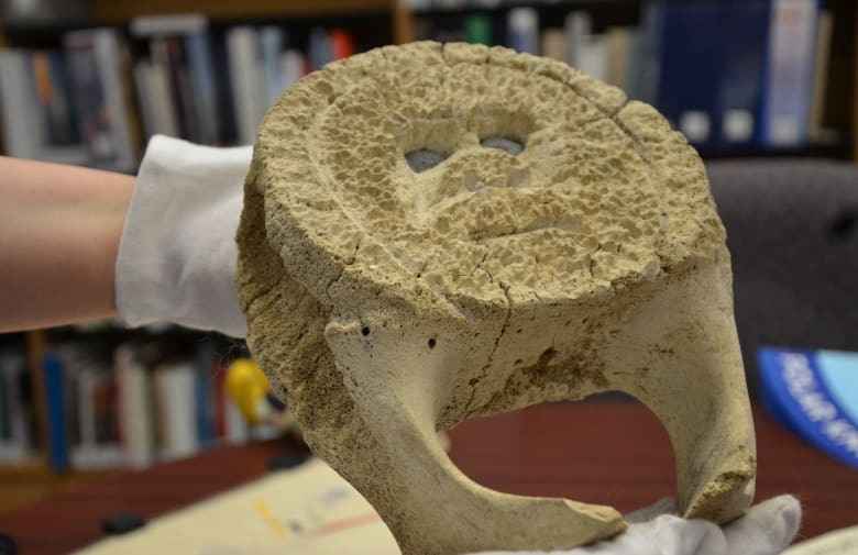 The box contained a human jawbone, with several back teeth still intact, as well as several Inuit artifacts, including a carved whale vertebrae and a wall hanging.