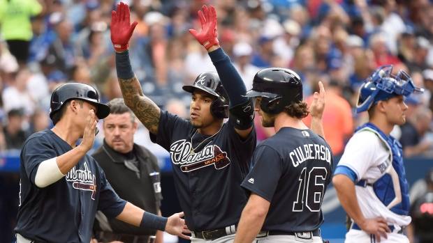 Johan Camargo hit his first career grand slam and drove in five runs as the Atlanta Braves defeated the Toronto Blue Jays 11-4 on Tuesday in the opener of a two-game interleague series.