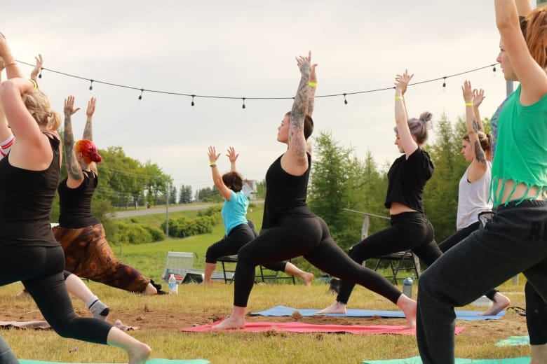 Bleary-eyed Backroad Ballers were led in a yoga class by Mary Zarei of MarYoga on Saturday morning.