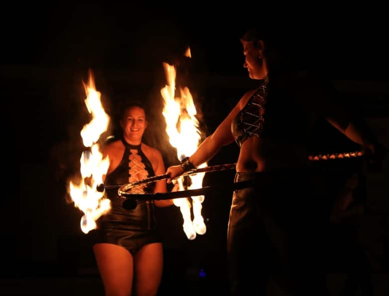 Fire dancers from Port City Circus heat things up between live music sets.