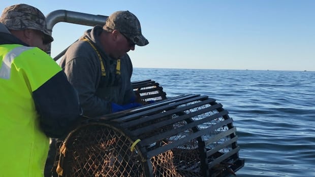 Lobster fishermen on Miscou Island are unsure what kind of catches they will have after having to move all their traps into one small area not affected by the closures for the North Atlantic right whale. (Kayla Hounsell/CBC)