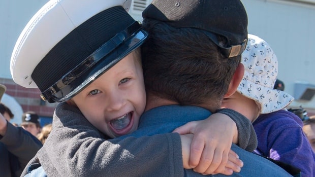 “It’s Daddy,” five-year-old Michael Larkin exclaimed on first sight of the submarine as he anxiously awaited the return of his father, Petty Officer 2nd Class Matthew Larkin.
