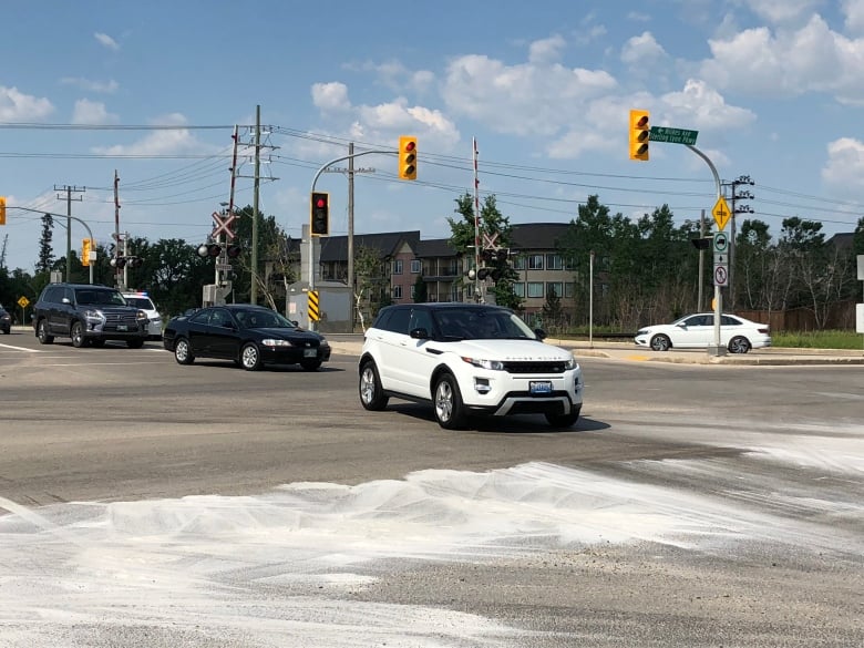 Winnipeg police asked commuters to find a different route after an oil slick shut down Sterling Lyon Parkway Wednesday.