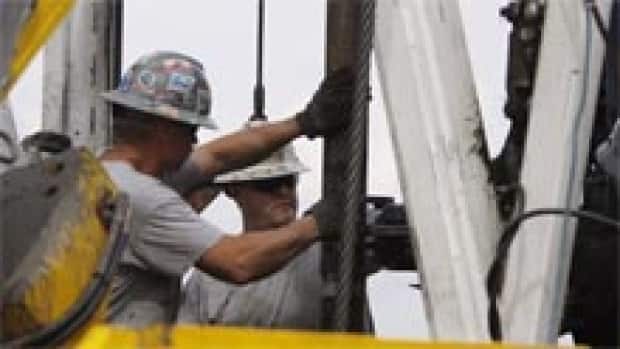 A crew works on a drilling rig at a well site for shale-based natural gas in Zelienople, Pa., in June 2012. (Keith Srakocic/Associated Press)