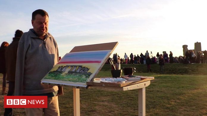 He has been a member of the Mouth and Foot Artists collective since 1996 and visited Stonehenge to paint the summer solstice sunrise.