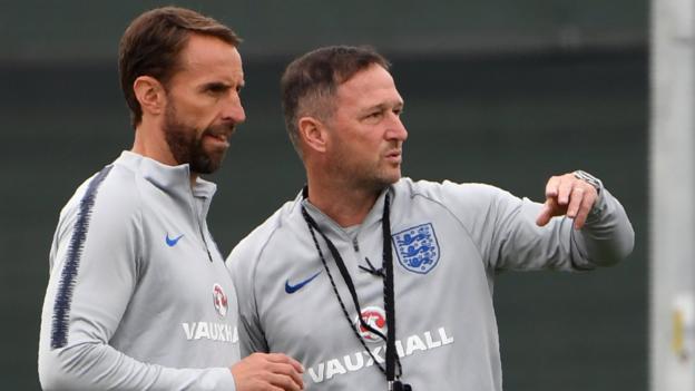 A piece of paper held by assistant manager Steve Holland seemed to suggest England’s line-up for Sunday’s World Cup Group G game against Panama.